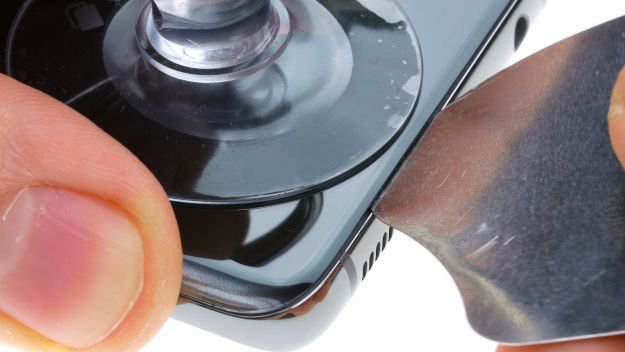 - vytiahnite prísavku konštantným tlakom, aby ste vytvorili miernu medzeru medzi zadným krytom a rámom