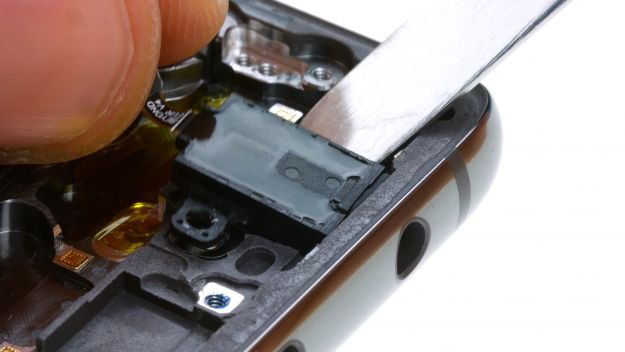 - pomocou spudgera alebo pinzety jemne nadvihnite zostavu reproduktora a odstráňte ju