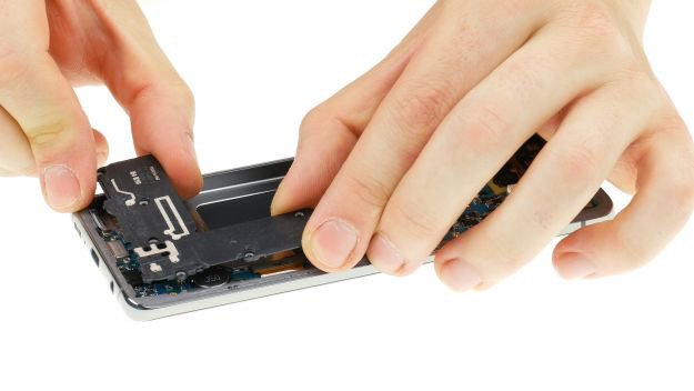 - vsuňte plastovú kartu pod batériu a oddeľujte ňou lepidlo až kým ho neoddelíte úplne